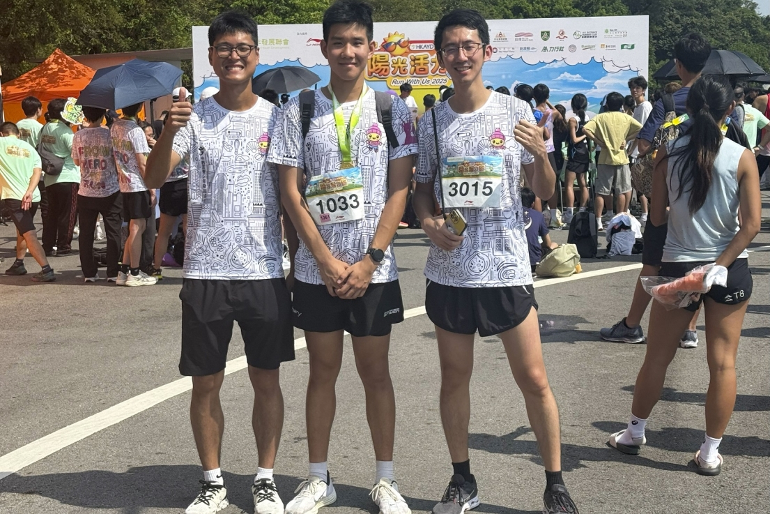 本校安排了13位學生及2位老師於10月19日參加十八區李寧陽光活力跑,期間遇上校友,一起享受跑步的樂趣。比賽當天天氣雖然非常炎熱,學生們在烈日當空下仍堅持不懈,盡力完成比賽。