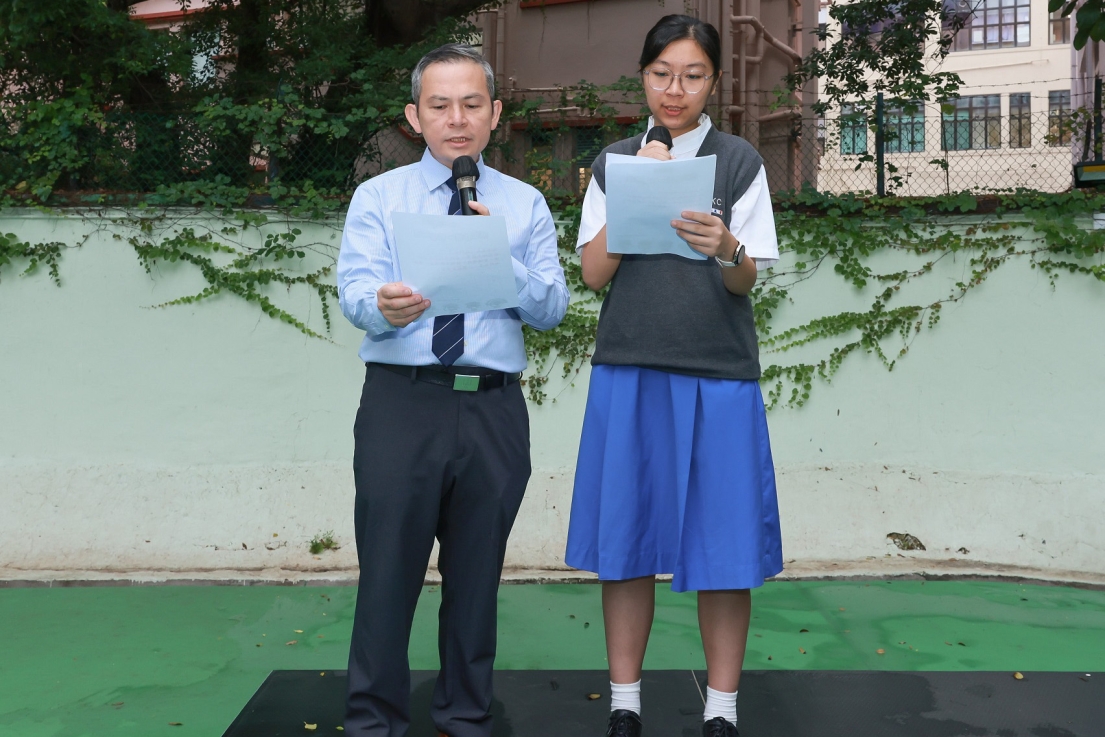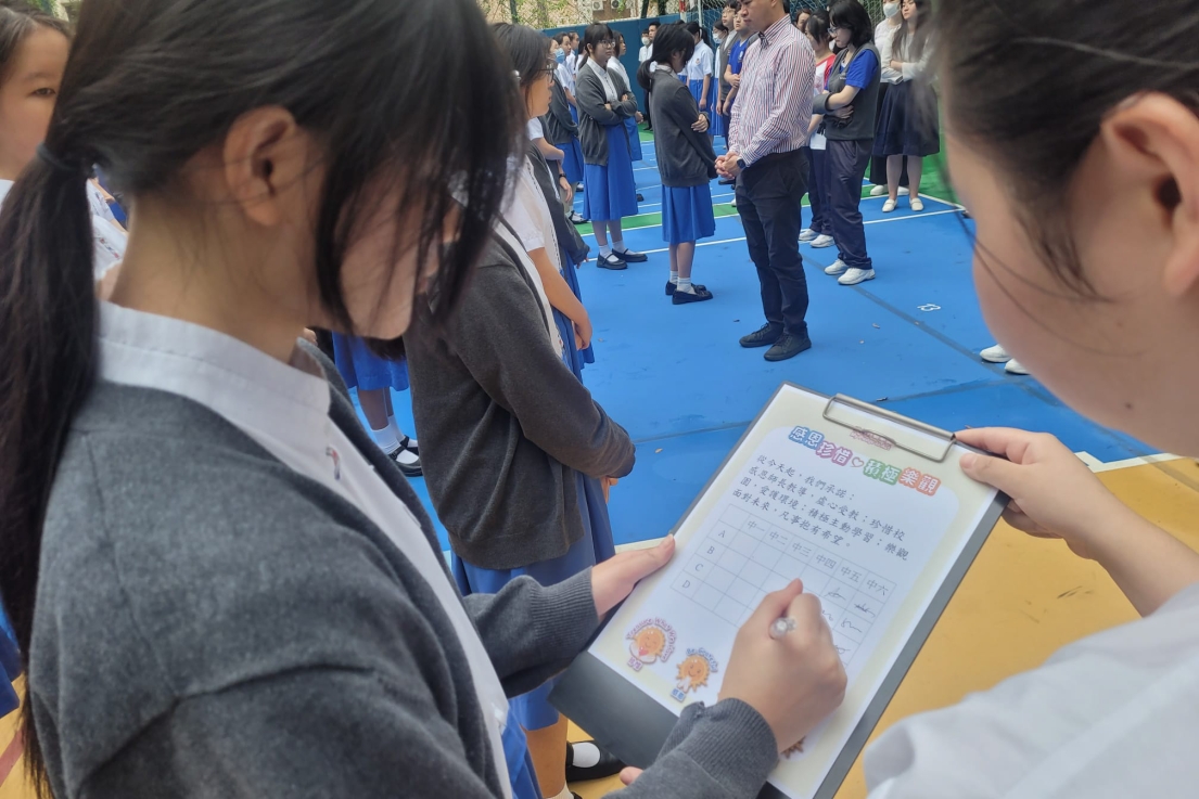 本校響應教育局「我的行動承諾2025── 感恩珍惜‧積極樂觀」,於10月28日早會進行宣誓儀式,讓學生透過宣誓活動,訂立學習目標,並付諸實行。活動由校長帶領學生會代表進行宣誓,最後由每班代表於承諾書上簽署。本校期望學生能透過宣誓儀式,感恩師長教導,虛心受教;珍惜校園,愛護環境;積極主動學習;樂觀面對未來,凡事抱有希望。