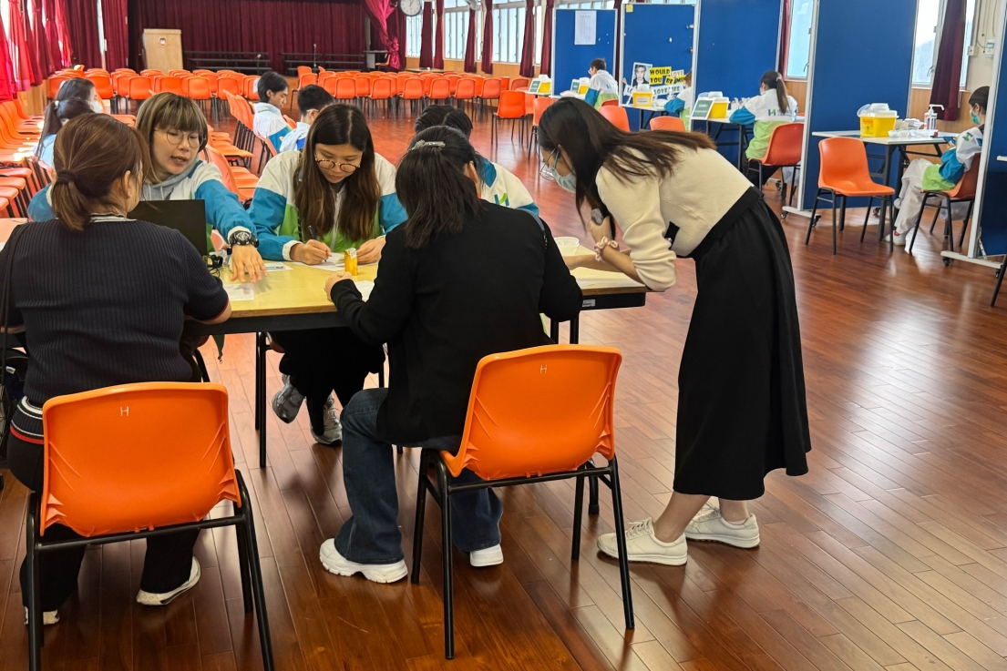 接種疫苗是預防季節性流感及其併發症最有效的方法之一,為方便本校全體學生及家長接種疫苗,本校於本學年參與衛生署推行的「季節性流感疫苗學校外展計劃」,並已透過計劃安排劍苗醫療有限公司於11月12日到校為400多名的學生及家長提供疫苗注射服務。