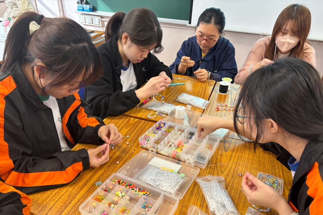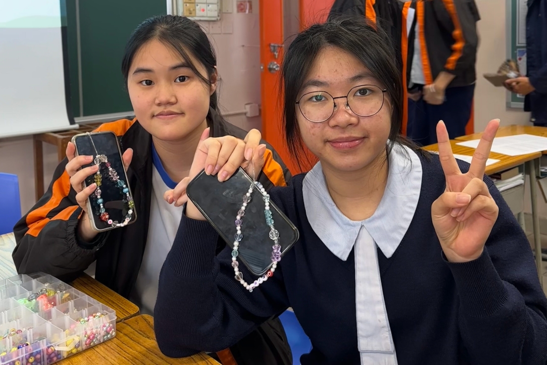 中六學生面對公開試所承受的壓力巨大,因此本校社工特意於11月多元學習周內邀請了中西區青少年服務單位到校主持不同類型的減壓工作坊,包括製作彩鹽瓶、手串、擴香石、毛毛球、和諧粉彩、押花香包,讓學生從藝術手作中獲得紓解;而煩惱之定格、驚嚇箱大冒險及谷住道氣減壓記等活動,則透過另類的方法紓解內心的惶恐及不安。經歷2節的減壓工作坊後,學生從繁重的壓力中釋放,獲得了繼續前行的正面力量。