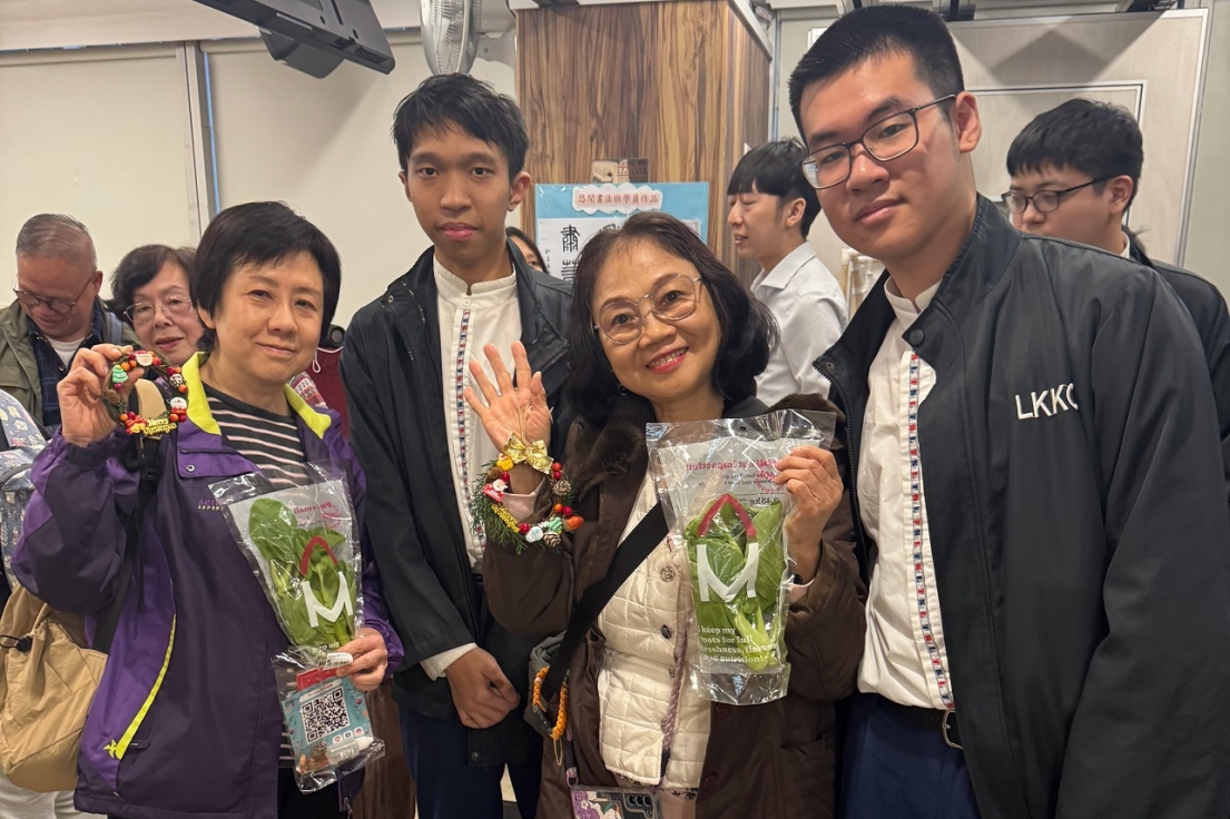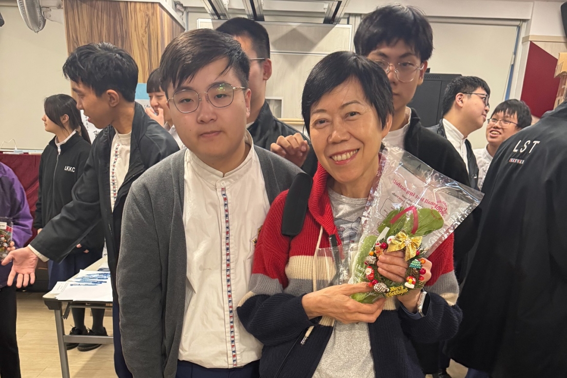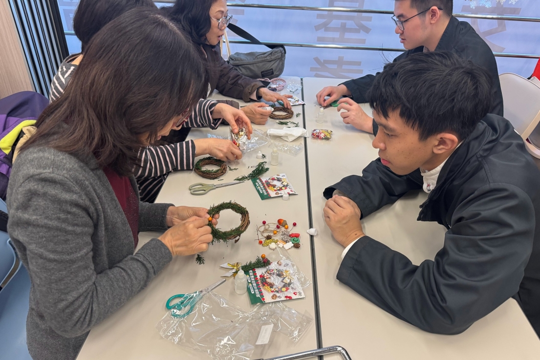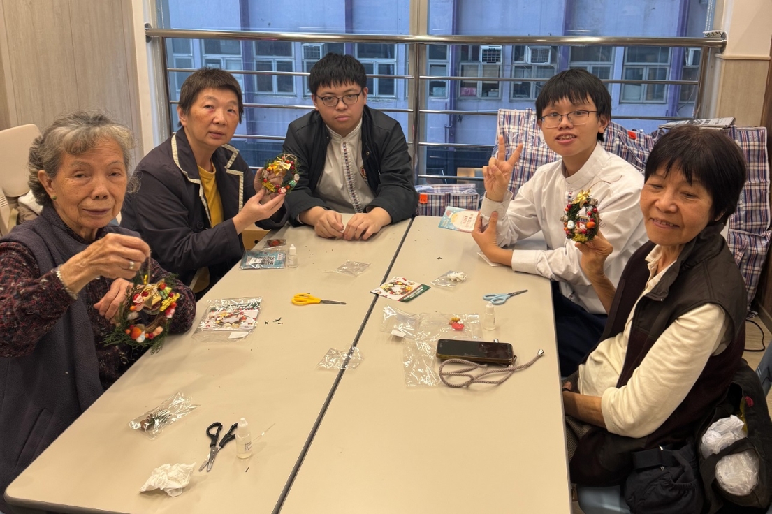 為培養學生愛心和責任感,本校在12月16日派出學生義工到「香港婦女基金會何郭佩珍耆康中心」進行長者義工服務。學生與長者一同製作聖誕花環,一邊談談家常,一邊製作小手藝,既可聯繫長幼情誼,也可一同感受節日温暖。同時,當日派發「Farmunity」計劃所種水耕菜,讓長者一同支持水耕種植。