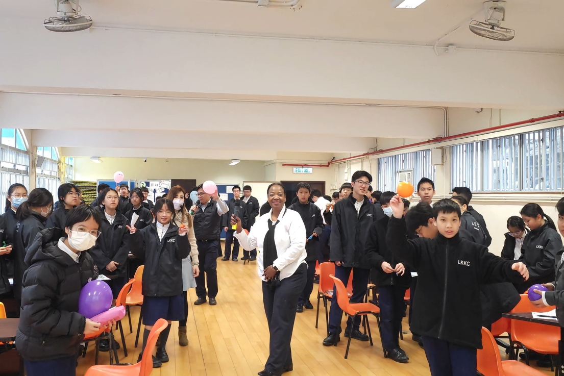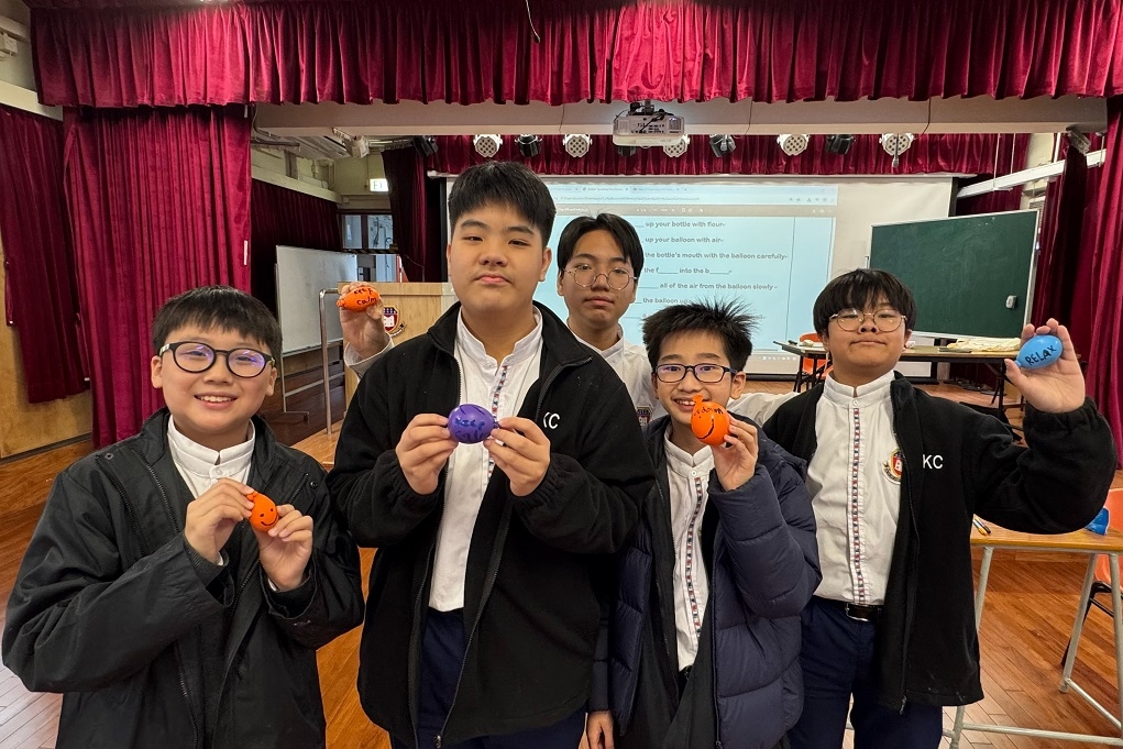 For the S.1 lunch activity, students have learnt how to relax and de-stress, through some simple exercises (like shoulder shrugs and box breathing) as well as how to talk to their peers. The highlight of the S.1 lunch activity was creating their own de-stress balls by using balloons and flour. On their de-stress balls, students wrote some positive quotes and advice on their balloons to remind themselves to stay positive. We would like to thank our S.5 student helpers from 5A and 5B for guiding the S.1 students during these activities.