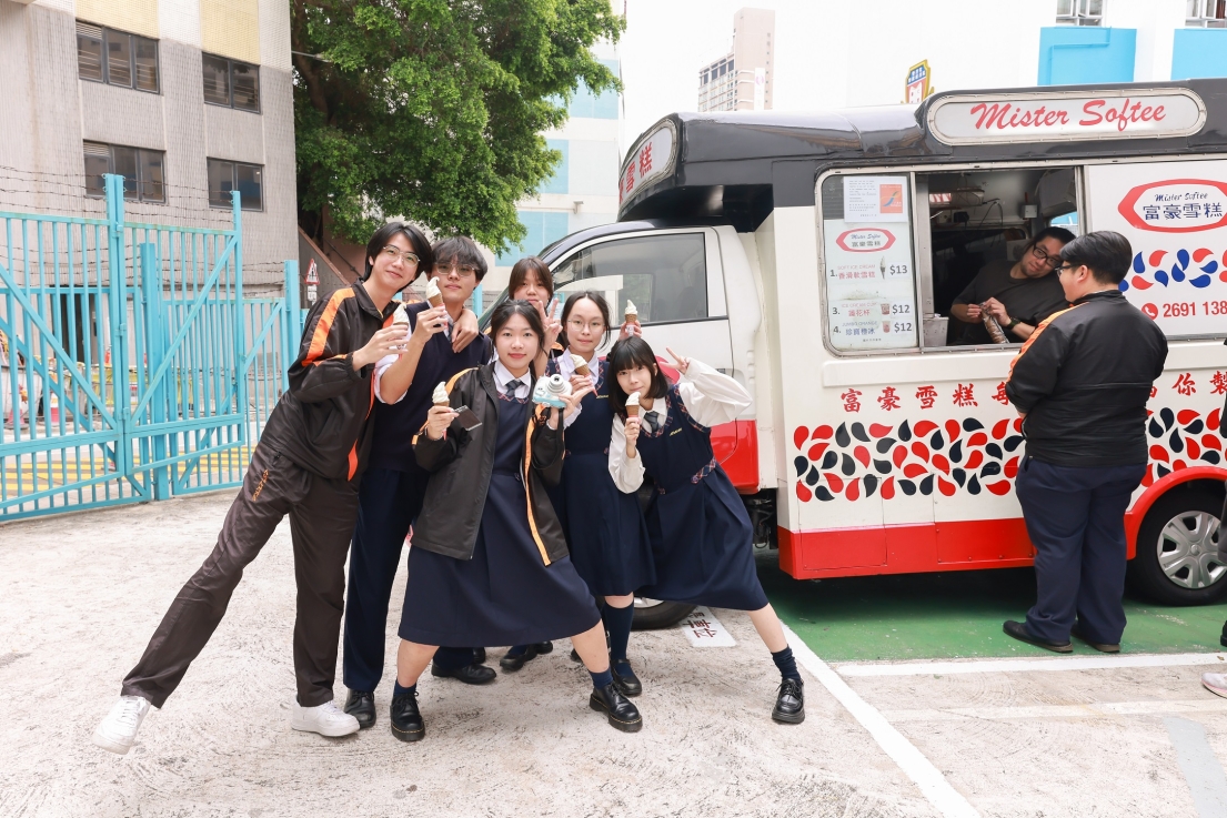 三月六日午膳時間,一輛滿載歡樂的富豪雪糕車駛入校園,為全校師生送上驚喜。當標誌性的《藍色多瑙河》音樂響起,同學們紛紛湧向雪糕車,臉上綻放燦爛笑容。是次活動特別以「趁墟」攤檔活動的盈利舉辦,將學生的努力化作甜蜜回饋全校。無論是經典軟雪糕,還是香脆雪糕筒,每一口冰涼都為校園注入滿滿幸福感,讓師生在忙碌的學習日程中稍作放鬆,共同享受這份溫馨時光。一口冰涼,一份喜悅。雪糕車的到來,不僅為午膳時間增添色彩,更為中六畢業生送上難忘的共同回憶。