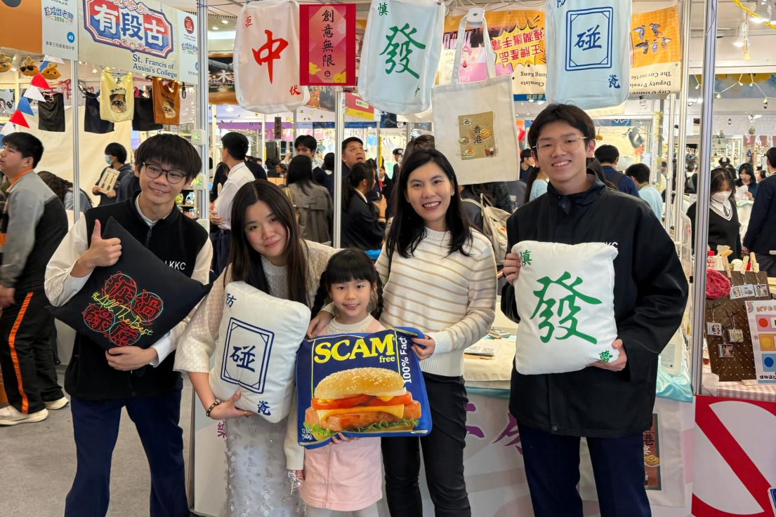 3月13至15日本校參加由九龍倉集團主辦的「學校起動」計劃 —— 趁墟做老闆。參加學生積極投入荷里活廣場的展銷活動,積極推銷產品,學習及實踐營銷的技巧。本年度展銷以「港心:零騙工房」為主題,學生製作不少特色產品,其中包括兩個系列:系列一以「香港情懷」為核心,運用霓虹燈、電車、特色街景及茶餐廳文化等元素,製成抱枕與布袋,藉此宣揚香港文化與情懷。系列二則以近年大眾關注的詐騙問題為創作靈感,將防騙訊息融入以麻雀為設計藍本的抱枕中。同學希望透過富趣味性且實用的產品,提醒大眾時刻提高警覺,防範詐騙。