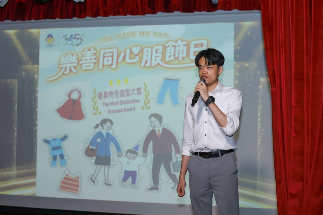 踏入九龍樂善堂成立145週年,樂善堂特舉辦「樂善同心服飾日」,邀請各學校、社福單位、企業及團體以「歡樂派對」為主題,捐款參與慈善活動。本校活動組聯同學生四社在十月二十一日響應本次活動,籌辦了「社際服飾造型比賽」。當日午膳時段,學校禮堂上演了一場精彩紛呈的學生模特兒表演,四社社員各展創意:有的親手製作主題服裝,有的訂製特色角色造型,更有社員以中國傳統文化服飾示人,並創作揮春對聯,展現濃厚節慶氛圍。現場師生同歡,洋溢一片歡樂喜慶的氣氛,成功凝聚校園愛心力量,共襄善舉。