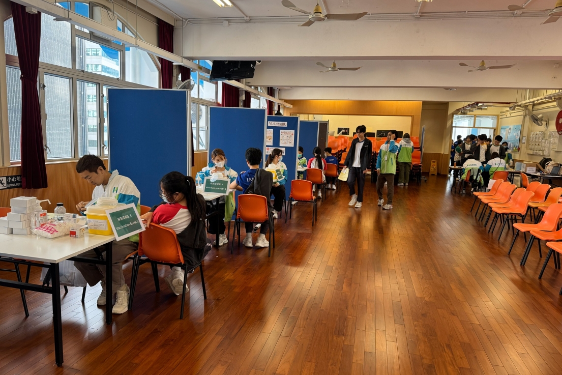 接種疫苗是預防季節性流感及其併發症最有效的方法之一,為方便本校全體學生及家長接種疫苗,本校於本學年參與衛生署推行的「季節性流感疫苗學校外展計劃」,並已透過計劃安排劍苗醫療有限公司於11月12日到校為400多名的學生及家長提供疫苗注射服務。