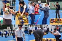 首日「四人五足」考驗團隊默契,師生綁腿協作闖關,老師與學生並肩作戰,步伐蹣跚卻更顯齊心,現場加油聲不絕於耳。隔天「你講我堆」加深了溝通與信任——學生需蒙眼參與並在老師指揮下拾取方塊,師生間的默契配合成為取勝關鍵。最後一日「團體接力賽」將氣氛推向高潮,四社共48名學生與8位老師全力衝刺,攜手接力地完成傳遞呼拉圈、足球、管道傳球及疊杯等合作活動,分別為「忠、義、勤、儉」四社爭取最後分數。現場吶喊與掌聲不斷,整個校園都洋溢著歡聲笑語。