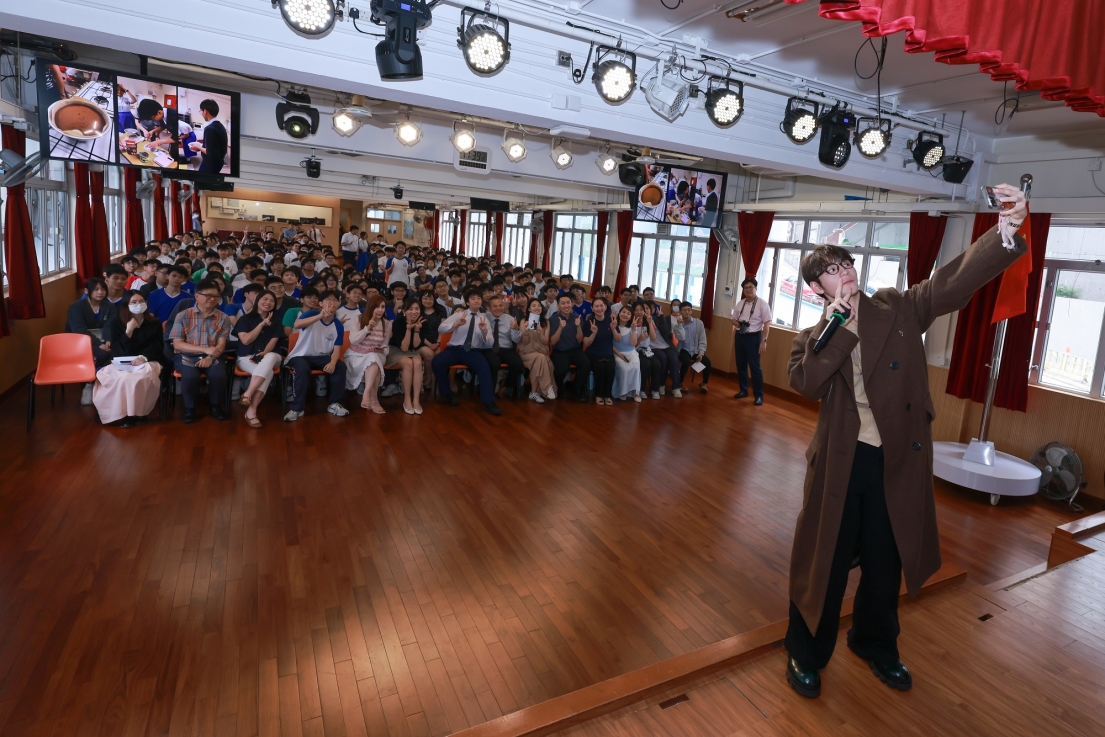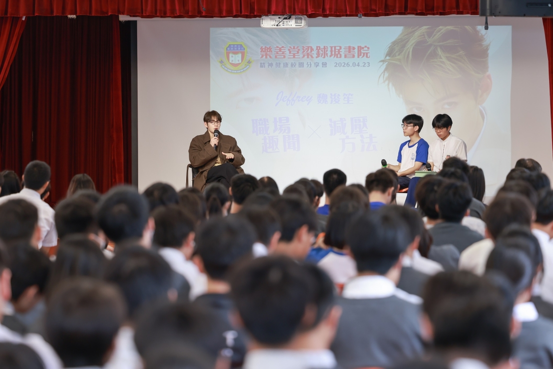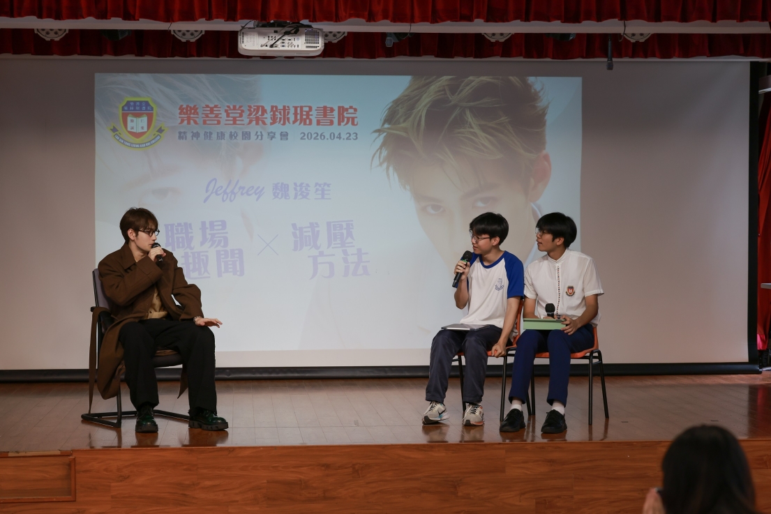 Jeffrey響應教育局4R 精神精神健康訊息,透過職場經歷分享,引導同學如何排解壓力,建立健康心態。接著,Jeffrey獻唱兩首歌曲唱出追夢的勇氣;適逢嘉賓生日,學生會代表全體師生送上特製心意卡、蛋糕及禮物,送上師生們最真摯的祝福,場面溫馨感人。