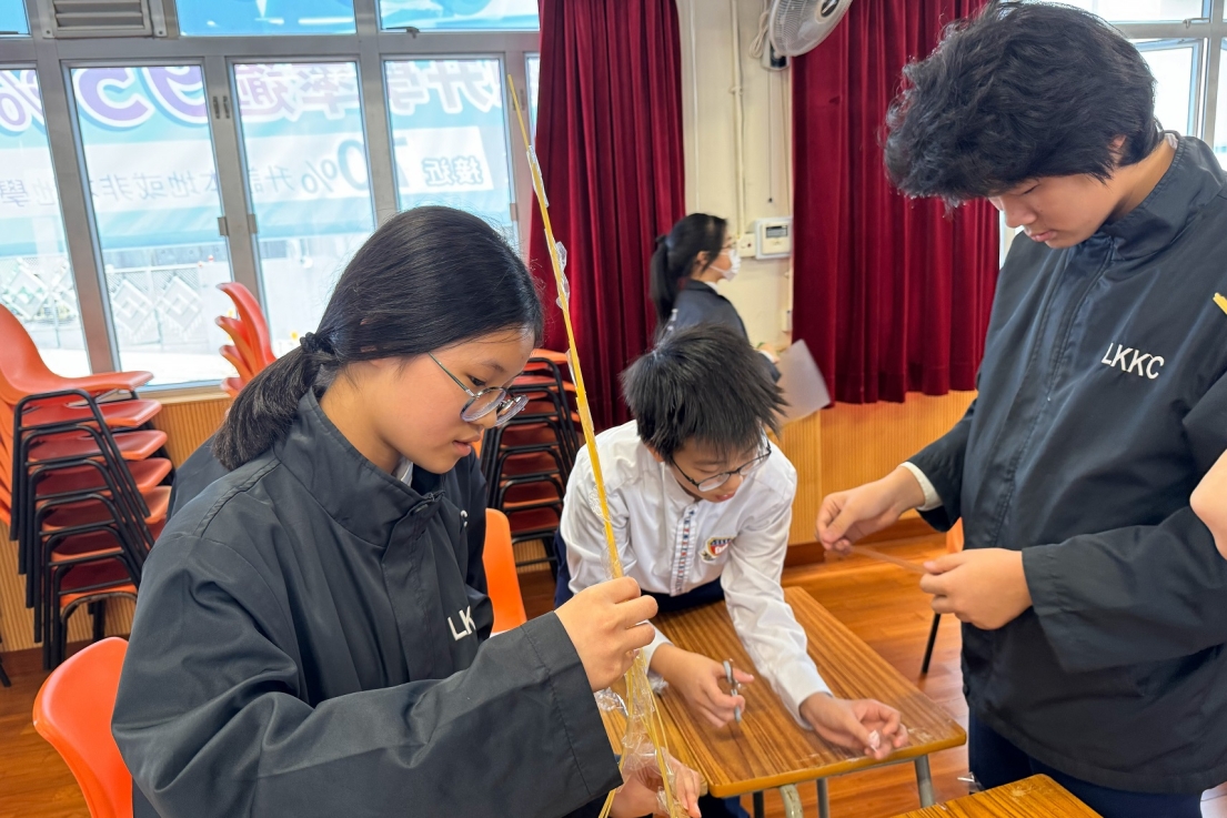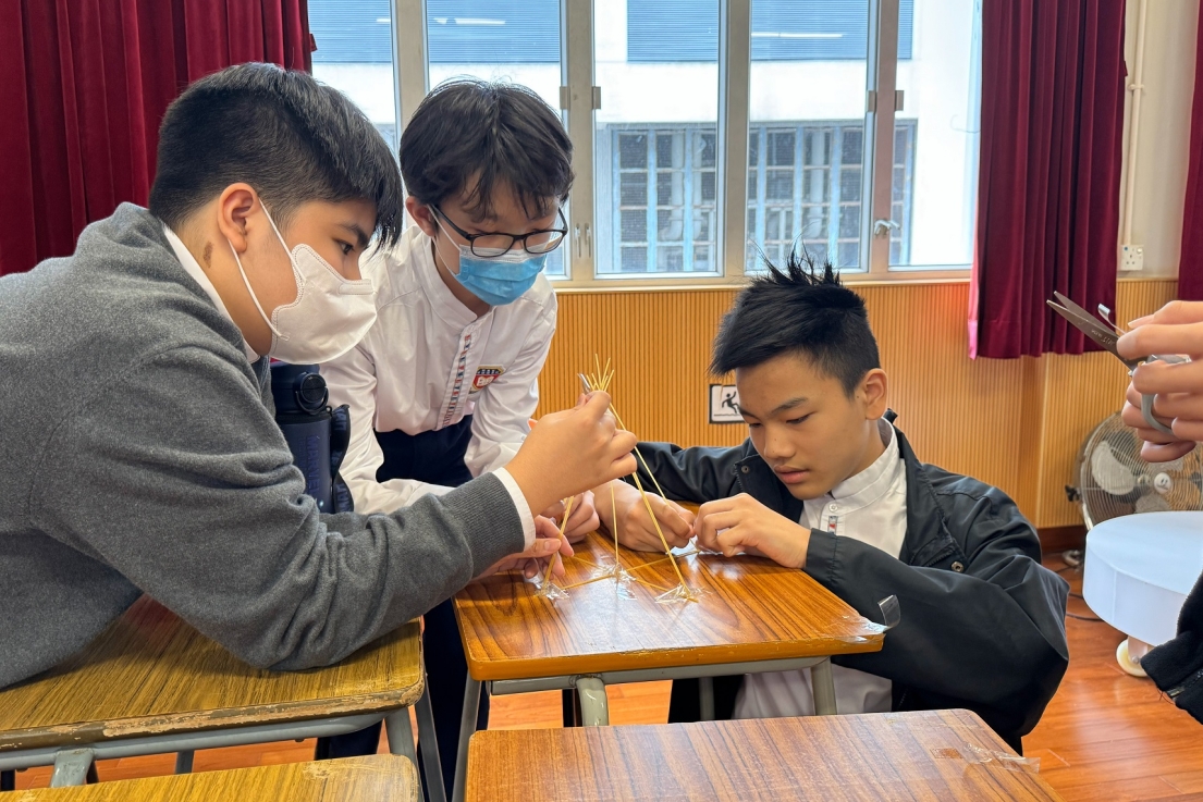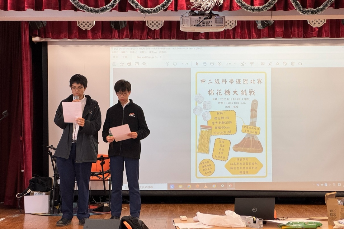 科學學會於12月18日上午舉辦了中二級班際科學比賽 —— 棉花糖大挑戰。學生在比賽中用意粉和膠紙建造以棉花糖為塔尖的高塔,當中發揮了科學探究精神,不斷嘗試和改良意粉塔,過程中提升了對科學的興趣及實踐能力,也在分組協作中學會團結合作。過程中同學十分投入,賽況激烈。