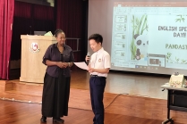 During lunchtime, the S.3 students participated in a collaborative activity, where they enjoyed the theme song from Kung Fu Panda and drafted a proposal to the Hong Kong Tourism Board aimed at promoting Hong Kong as a "pandastic" destination. Throughout the week, a film screening of Kung Fu Panda and an English exhibition coupled with a quiz on the China Showcase were also held. Students enjoyed themselves while grasping the message: "Be a panda protector; every step counts."