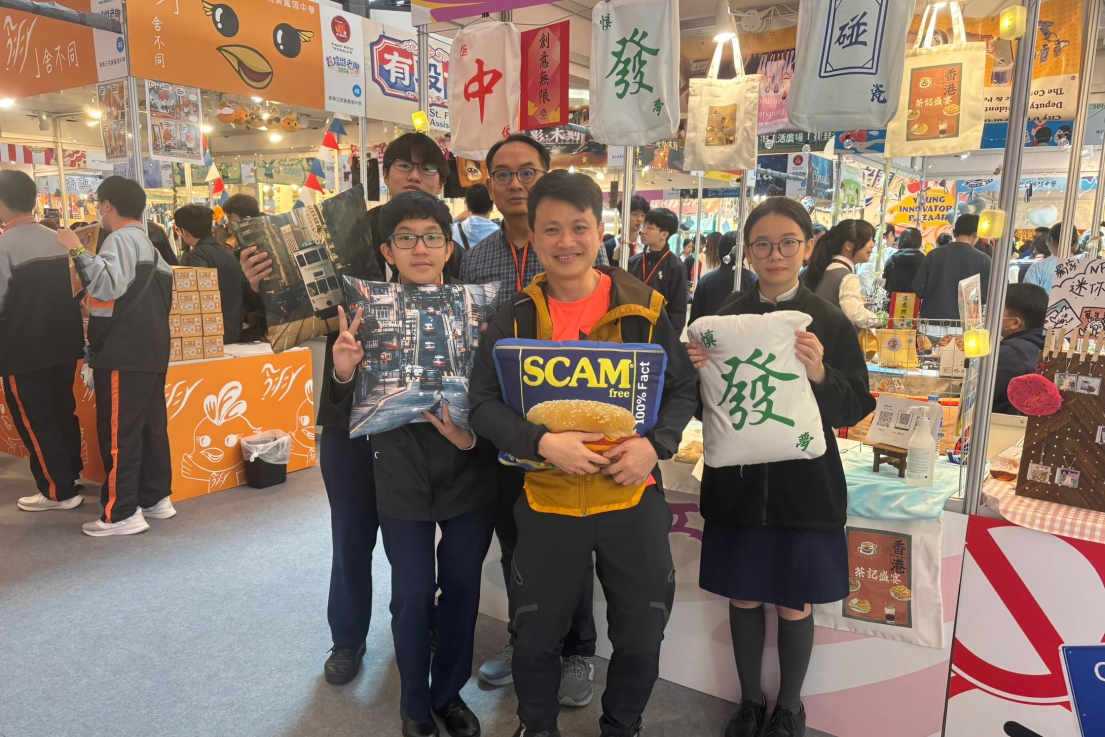 3月13至15日本校參加由九龍倉集團主辦的「學校起動」計劃 —— 趁墟做老闆。參加學生積極投入荷里活廣場的展銷活動,積極推銷產品,學習及實踐營銷的技巧。本年度展銷以「港心:零騙工房」為主題,學生製作不少特色產品,其中包括兩個系列:系列一以「香港情懷」為核心,運用霓虹燈、電車、特色街景及茶餐廳文化等元素,製成抱枕與布袋,藉此宣揚香港文化與情懷。系列二則以近年大眾關注的詐騙問題為創作靈感,將防騙訊息融入以麻雀為設計藍本的抱枕中。同學希望透過富趣味性且實用的產品,提醒大眾時刻提高警覺,防範詐騙。
