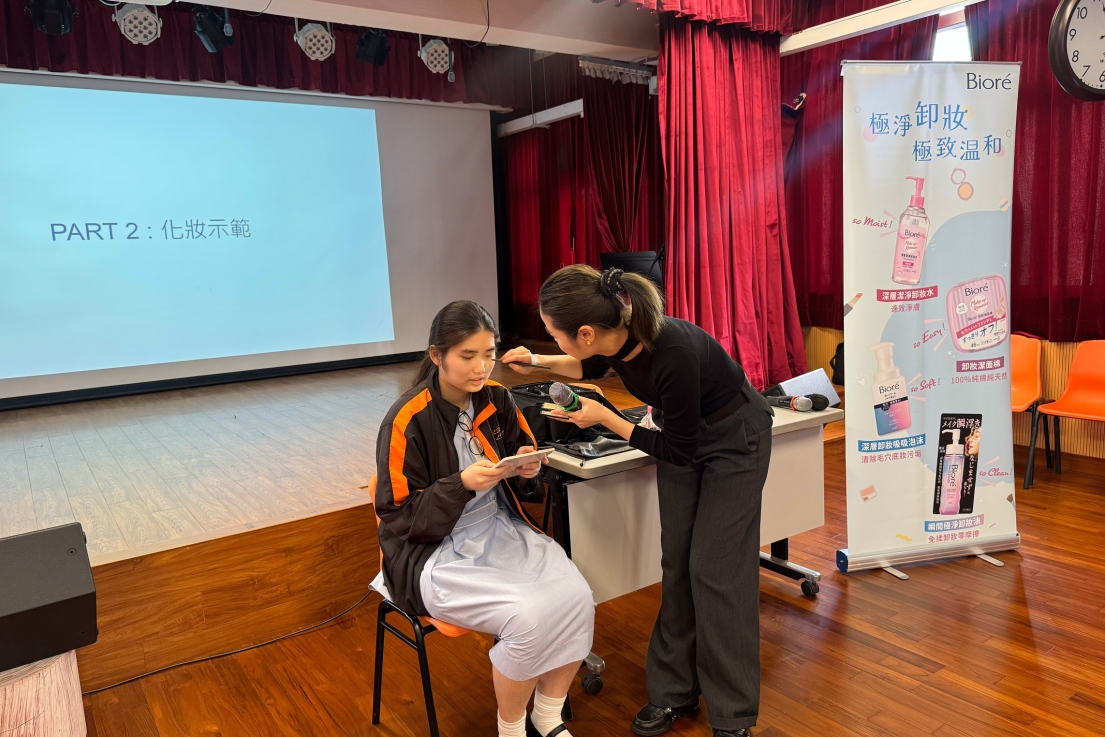 為協助中六學生面對日後升學及職場面試作好準備,本次講座邀請專業化妝師到校分享個人日常生活的護膚習慣、提醒衛生儀容的重要性及面試時需要注意的儀表,為學生提供實用的技巧和心得。
